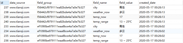 select * from crawled_data1 t1 where 1 = 1       and t1.data_source = 'www.tianqi.com' order by t1.created_date desc,t1.id;  |